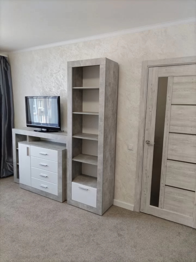Продаю 1комнатную квартиру. Кухонный гарнитур, стол, 4 табуретки, холодильник, микроволновка, варочная панель, вытяжка, прихожая, стиральная машинка, диван, комод, стеллаж, шкаф. Всё новое, никто не жил. Без обременений. Телевизор. № 16897