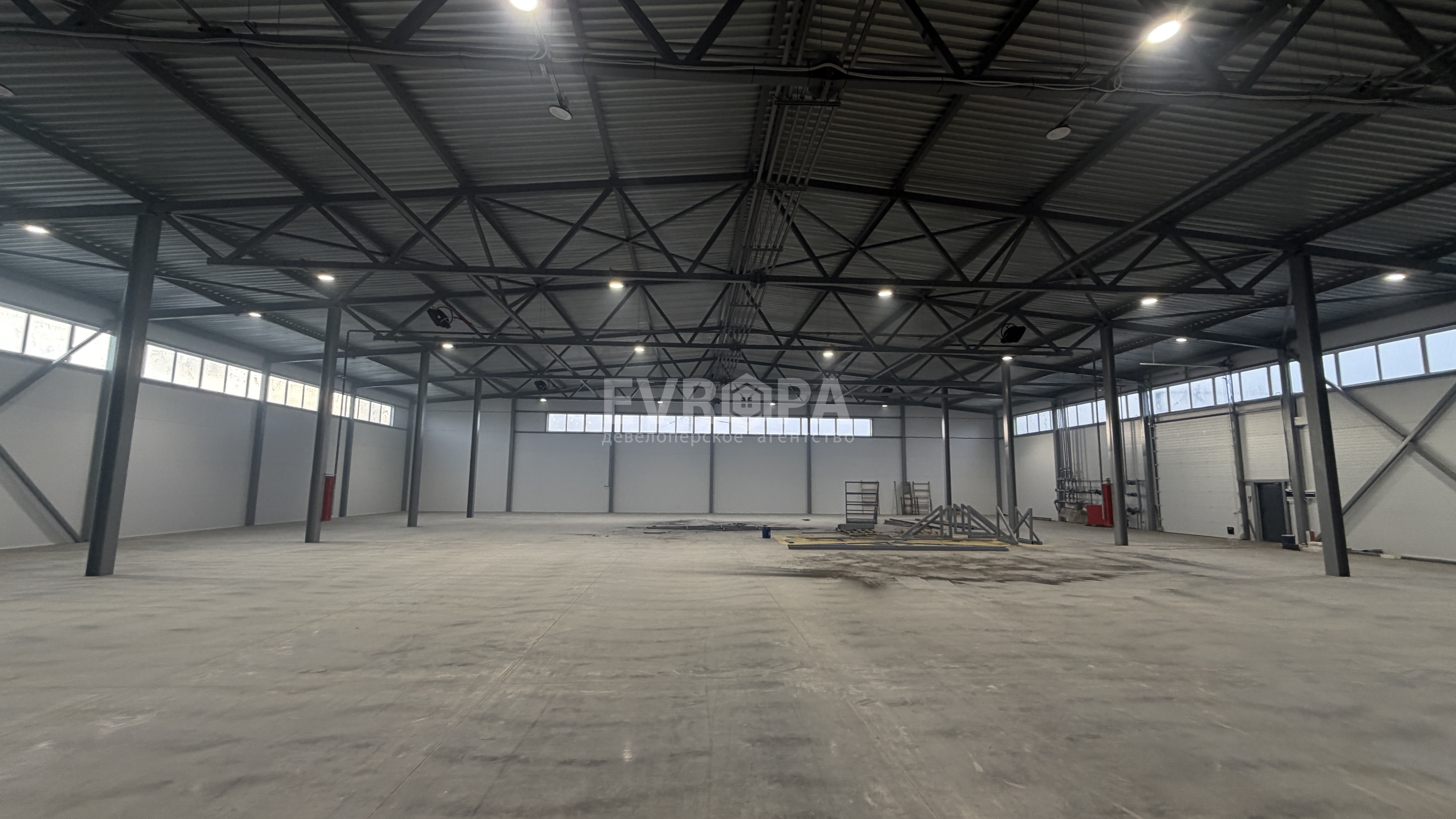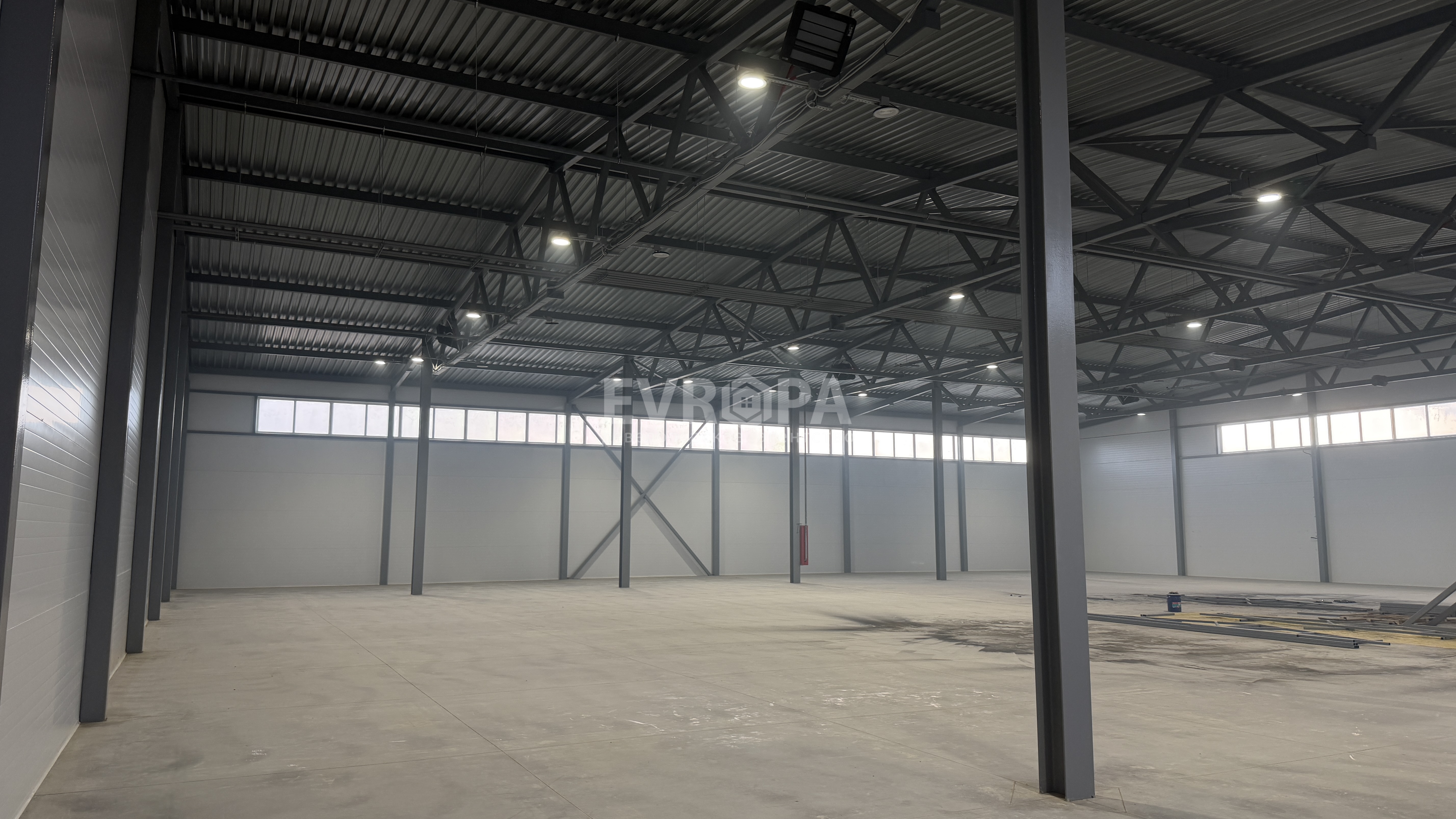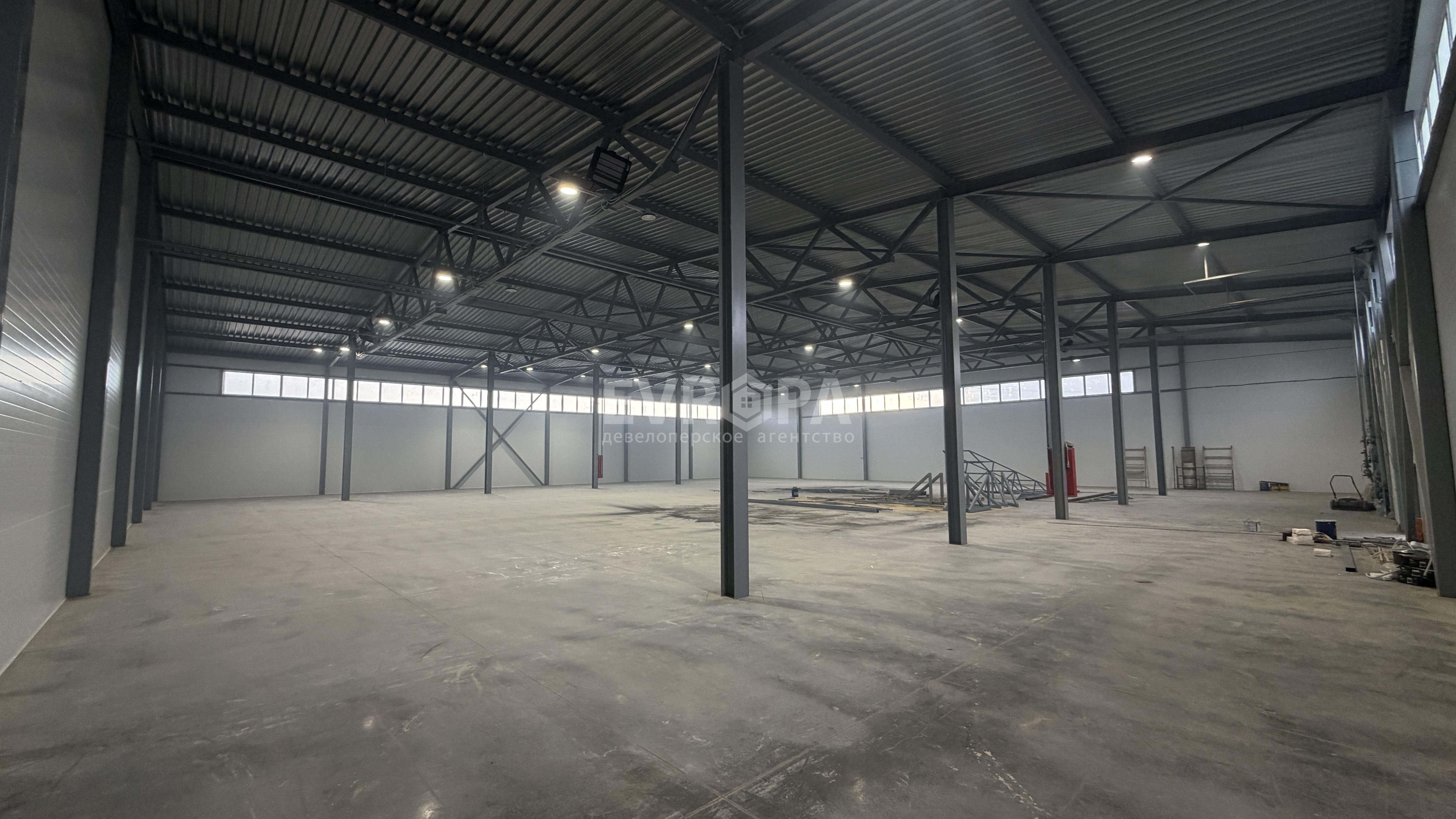 Примечание: Производственно-складское помещение, оборудованное автоматическими воротами и входной дверью, топпинговые полы, заведена вода и канализация. Возможно дальнейшее продолжение здания до размера 36х108 м. Есть офисы для персонала!