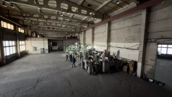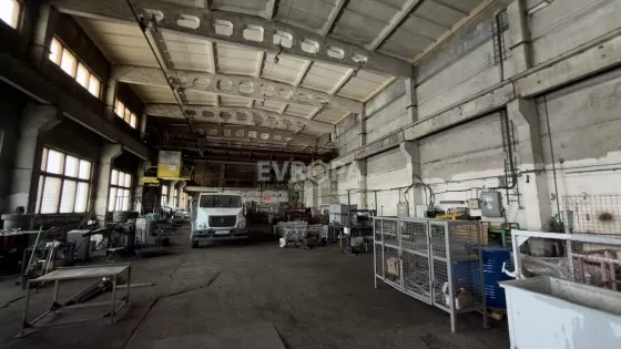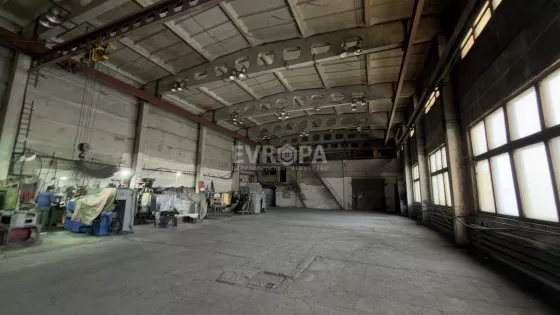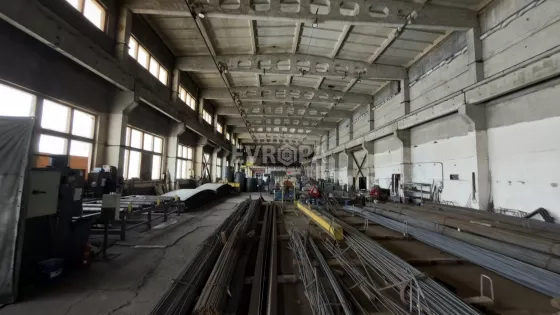 Примечание: Оборудование: кран-балка 5 т — 2 шт., кран-балка 1 т — 1 шт., мостовой кран — 20 т. Въездные ворота для фур. Бетонный пол. К корпусу примыкает четырёхэтажное здание АБК с офисными и бытовыми помещениями.