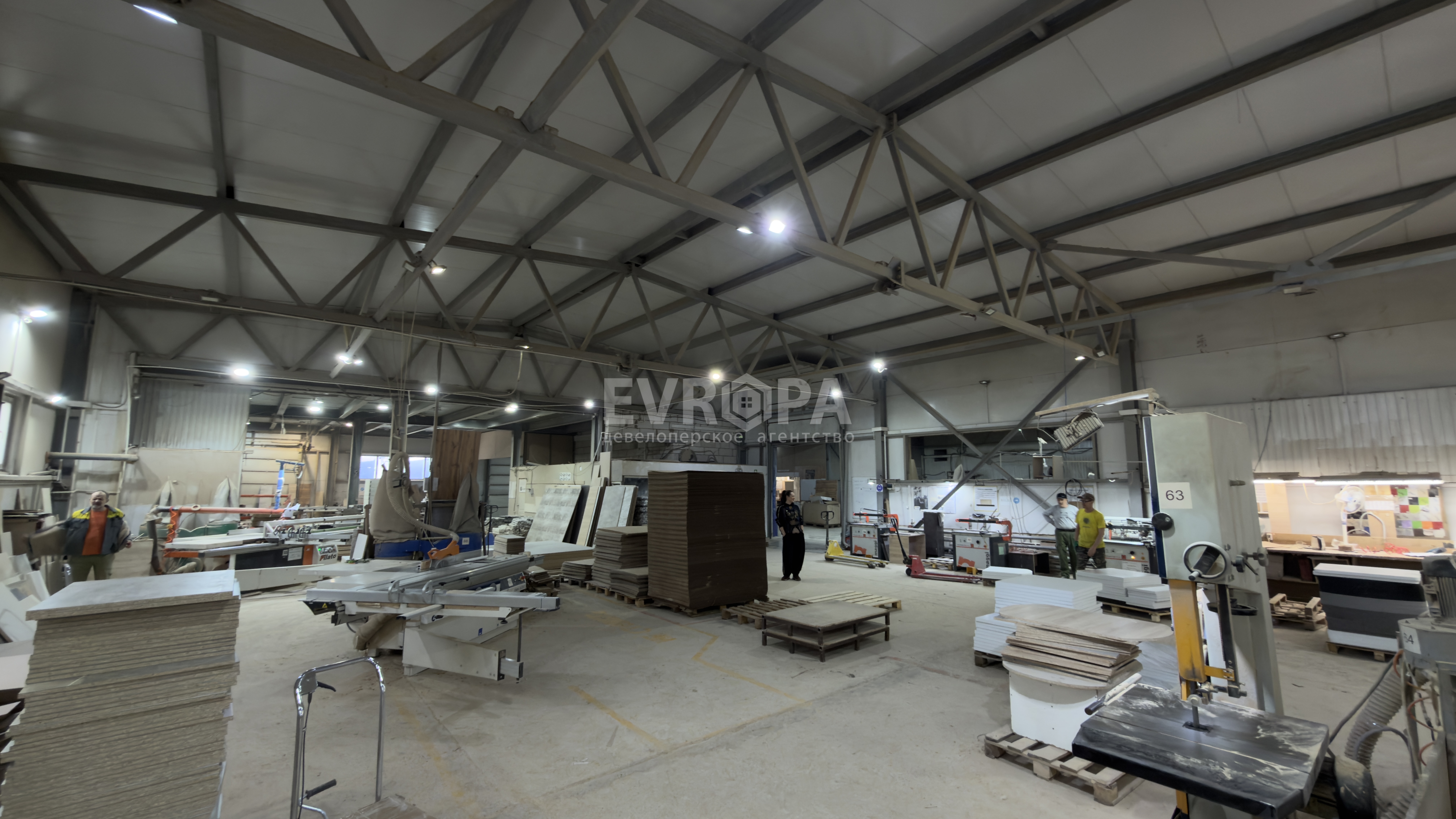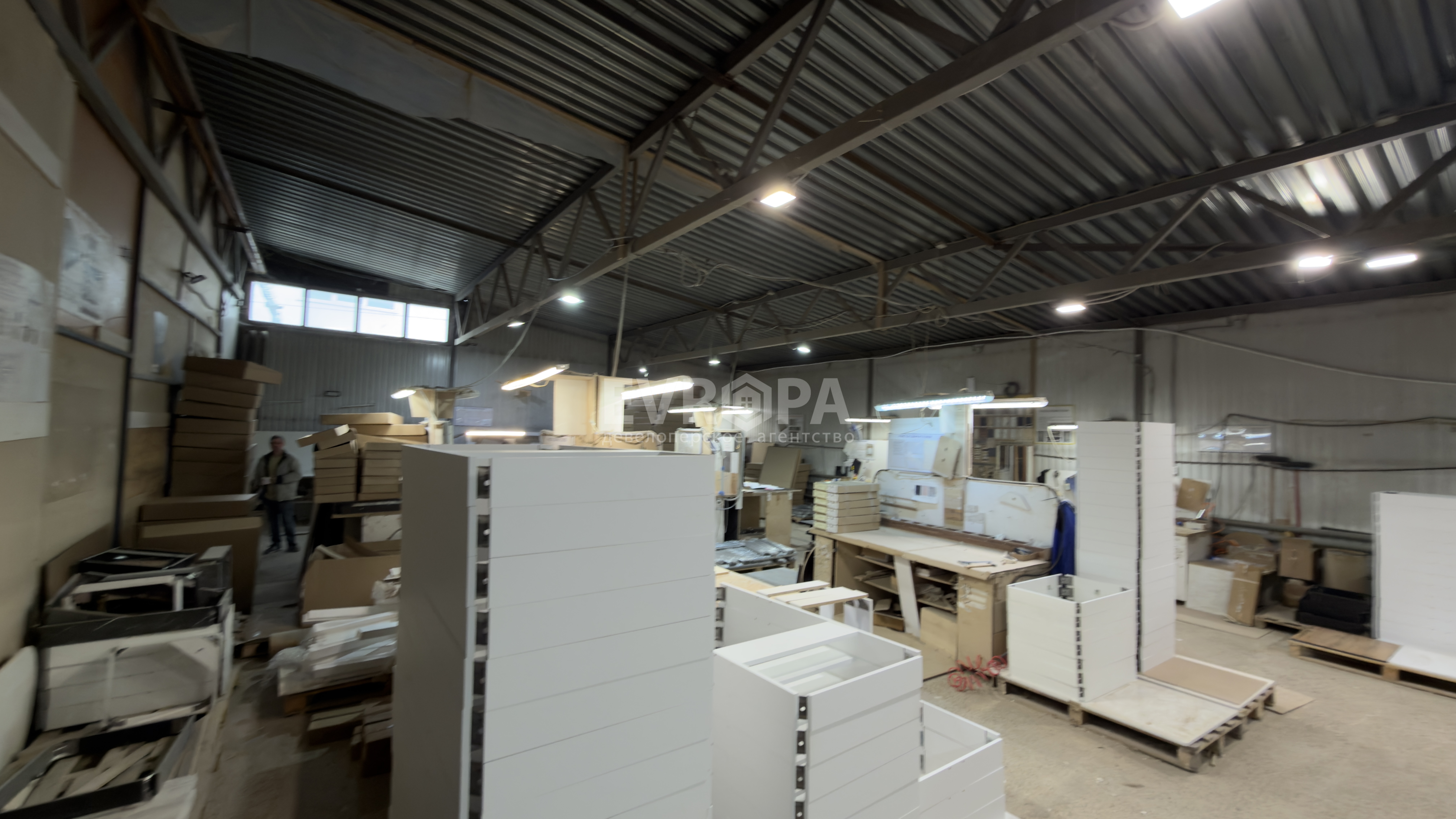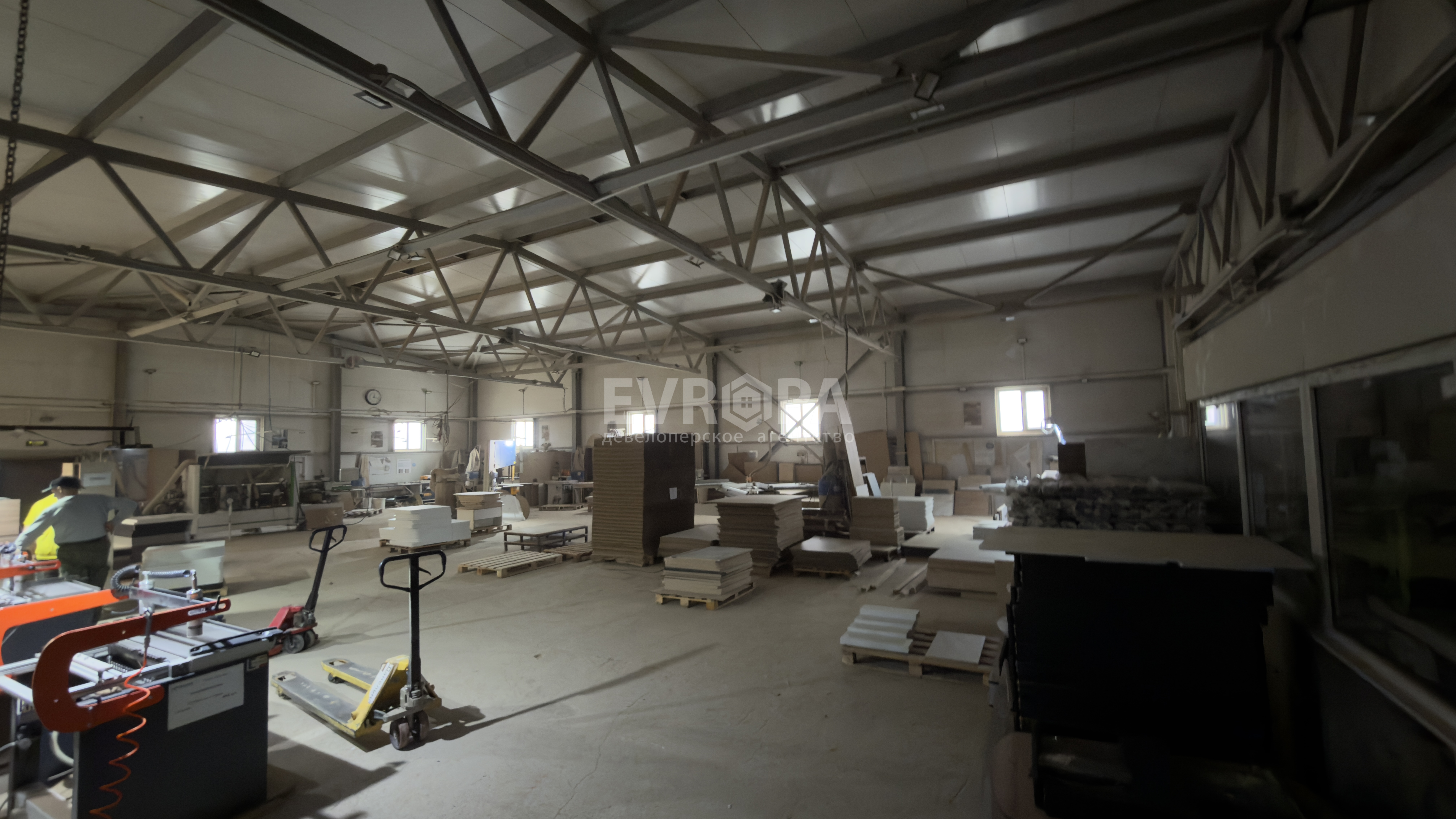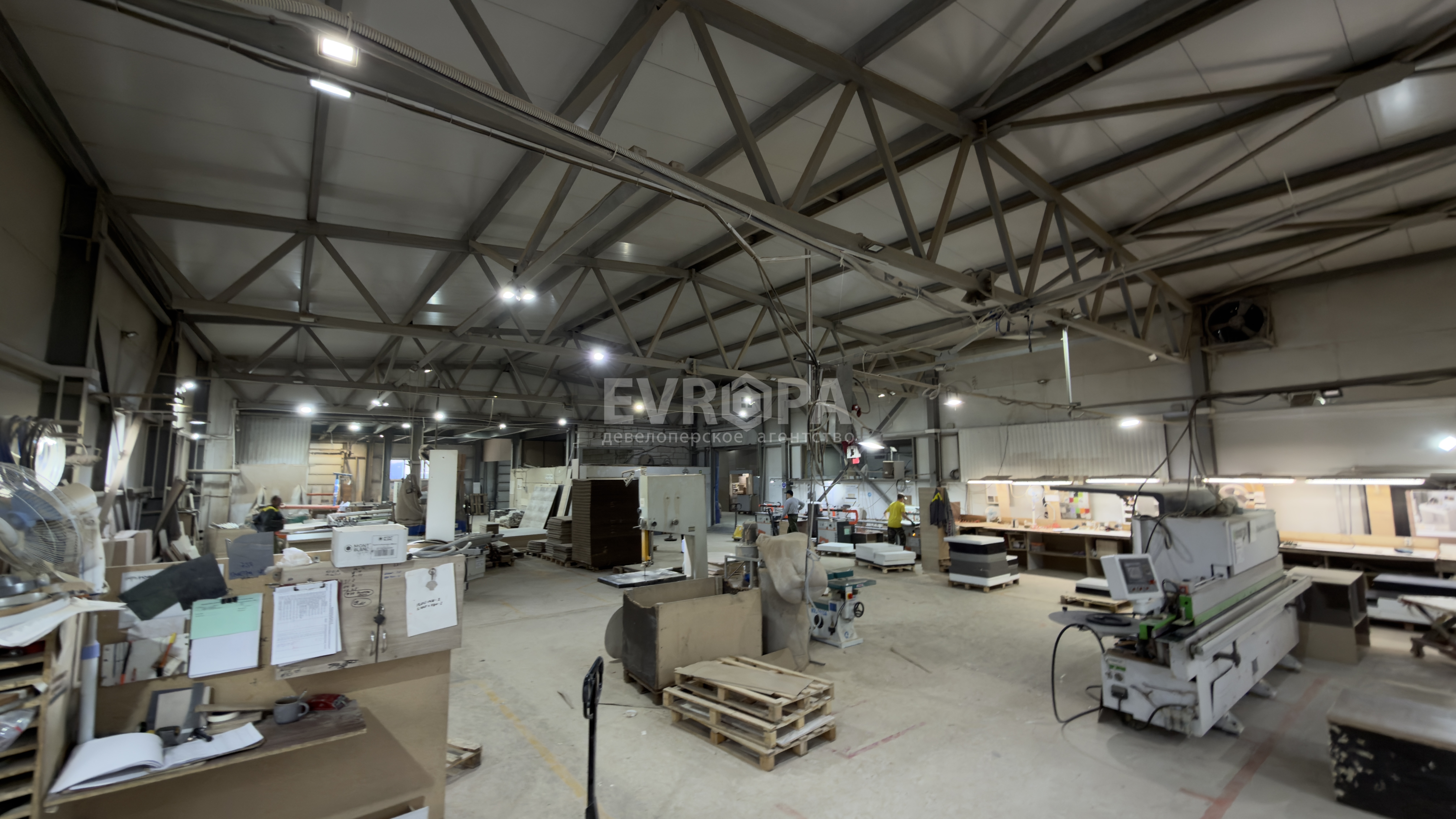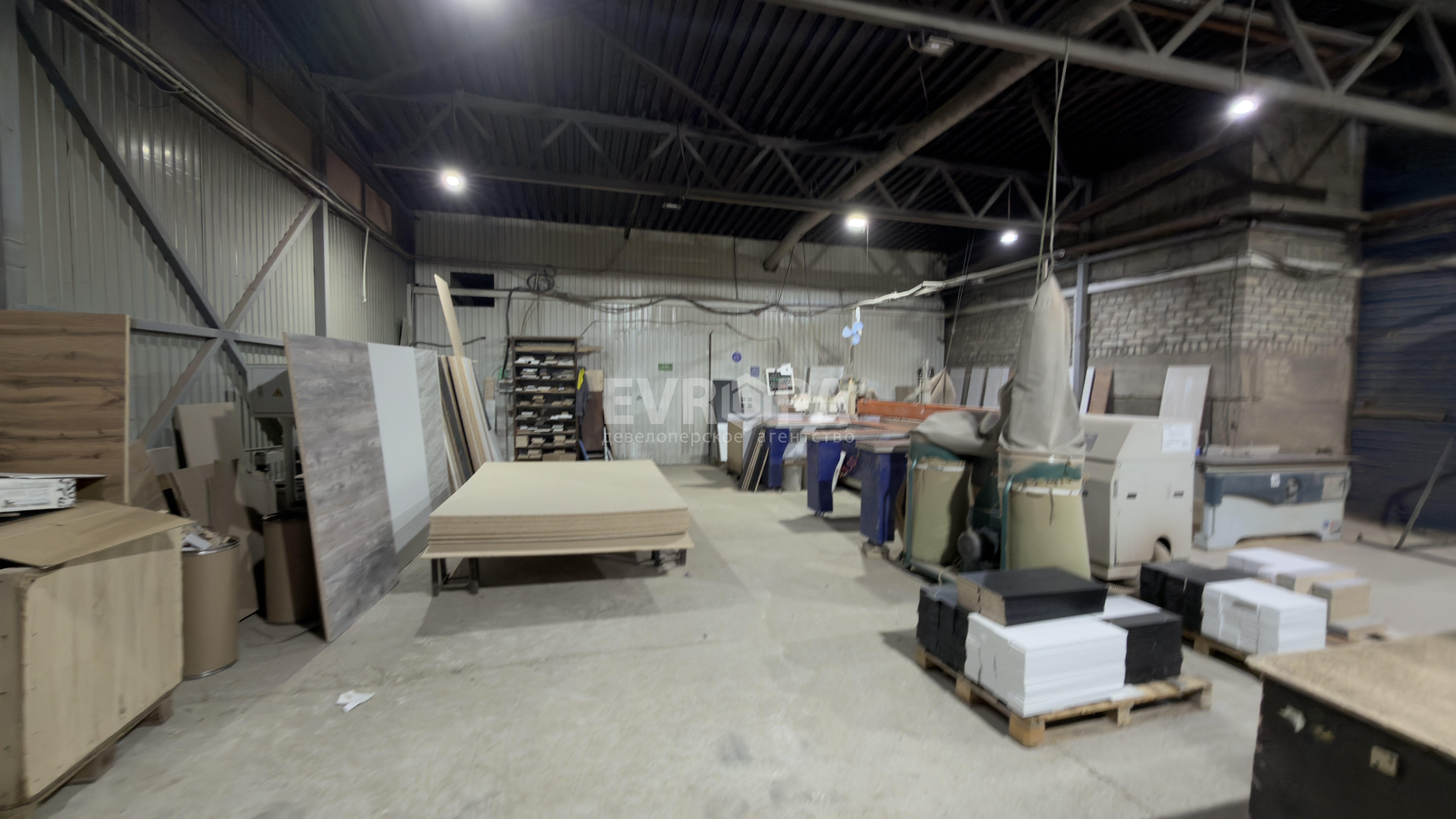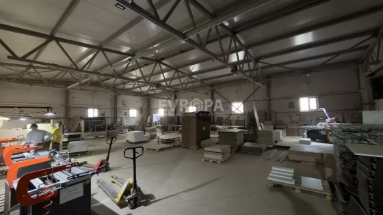Примечание: Просторное помещение площадью 1600 м² в собственности. Здание состоит из двух этажей: на первом расположено производство, на втором — офисы. Помещение подходит как для производственных нужд, так и для склада. Подведены вода и канализация, есть отопление и электричество. Планируется газификация.