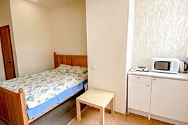 - Разделена на 3 студии (15, 18, 18 ) кв.м. Каждая оборудована своим туалетом и мини-кухней+ вся техника и мебель.