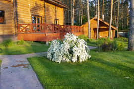 - Ухоженная территория: Идеальный газон с системой автоматического полива. В комплекте вся необходимая техника для ухода за участком.