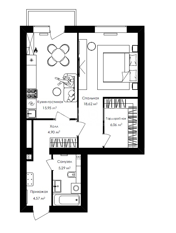 | Санузел | Совмещенный |